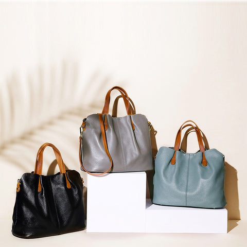 Автентични кожени чанти от главищна говежда кожа с текстура “личи” за жени